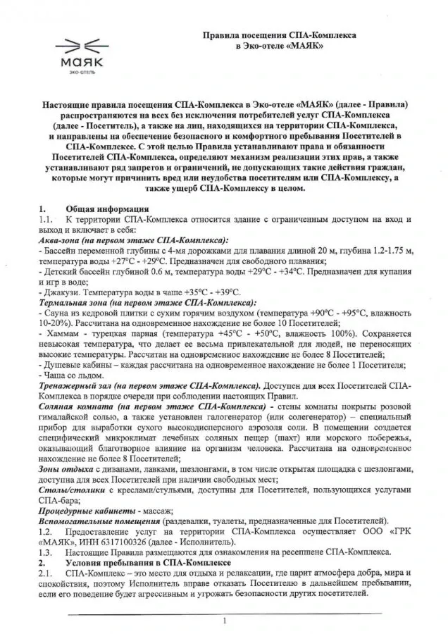 Посещение СПА комплекса. Детский билетБудни: