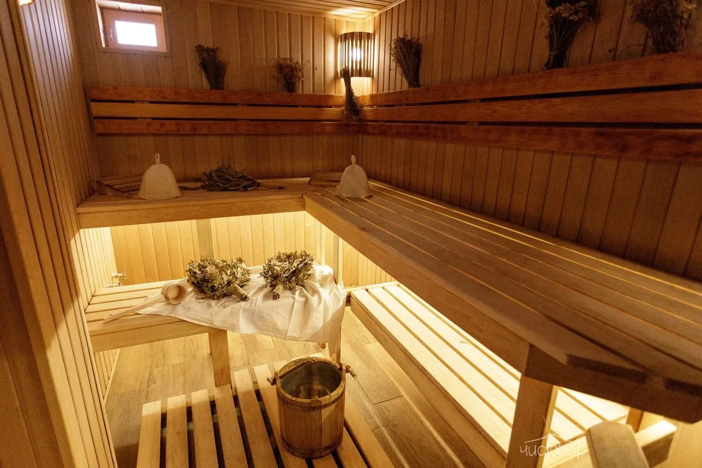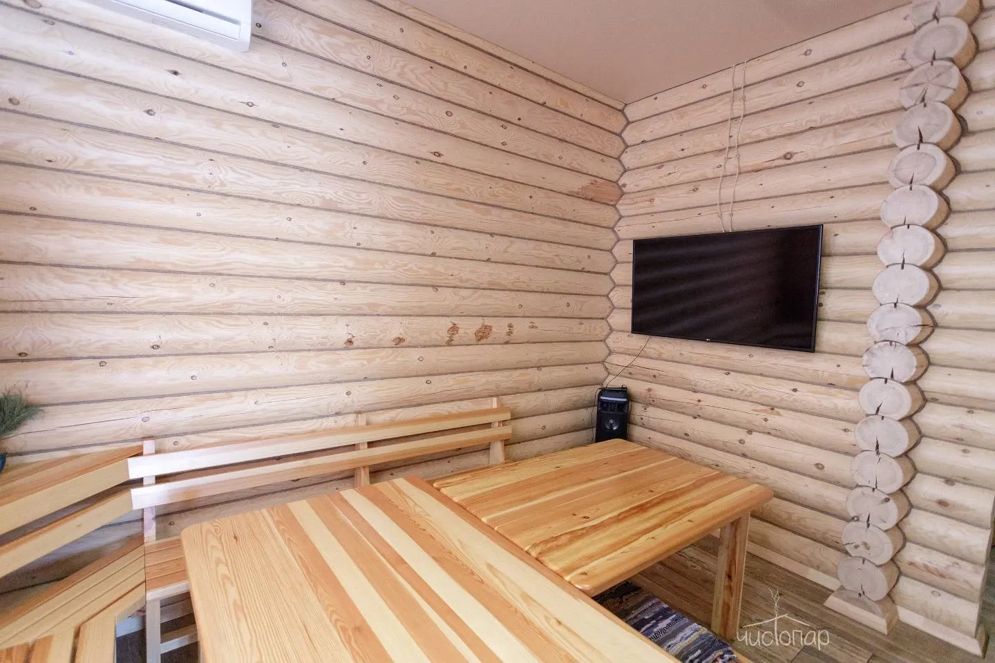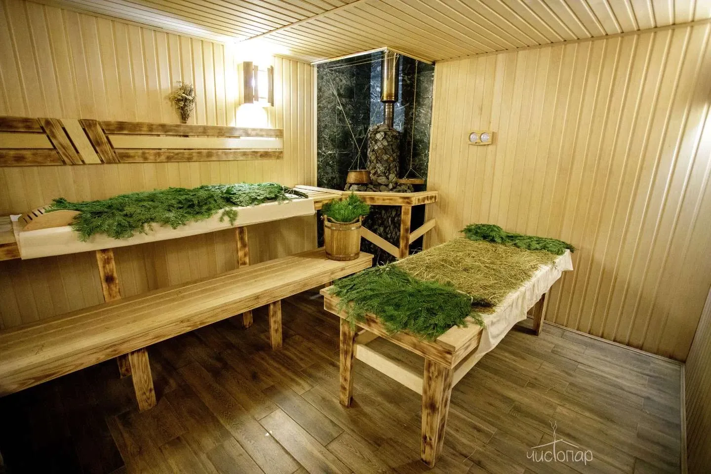 К услугам гостей предоставлена настоящая русская баня, где вы отдохнёте не только душой, но и телом. Дополнительно предоставляются услуги профессионального банщика, который предложит различные виды веников для парения, сделает вкусный тонизирующий чай и угостит мёдом. Комната отдыха оснащена большим столом и телевизором. Превосходный вариант, чтобы отметить праздничное событие или встречу друзей.