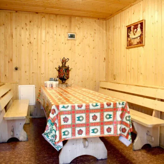 К услугам отдыхающих русская баня на дровах, вмещающая до 12 персон. Помещение оснащено парной, бассейном, душевой и уютной комнатой, где проходят задушевные беседы с чашкой ароматного чая. Так же предлагаются дубовые и березовые веники.