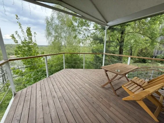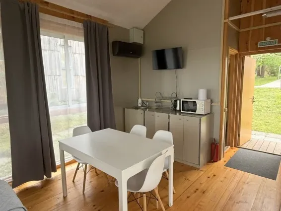 Двухкомнатное бунгало (25/31кв.м + терраса 17кв.м) с видом на реку. В гостиной раскладной диван, мини-кухня, барная стойка. В спальне двуспальная кровать. Регулируемые теплые полы. Разрешено проживание с домашними животными.