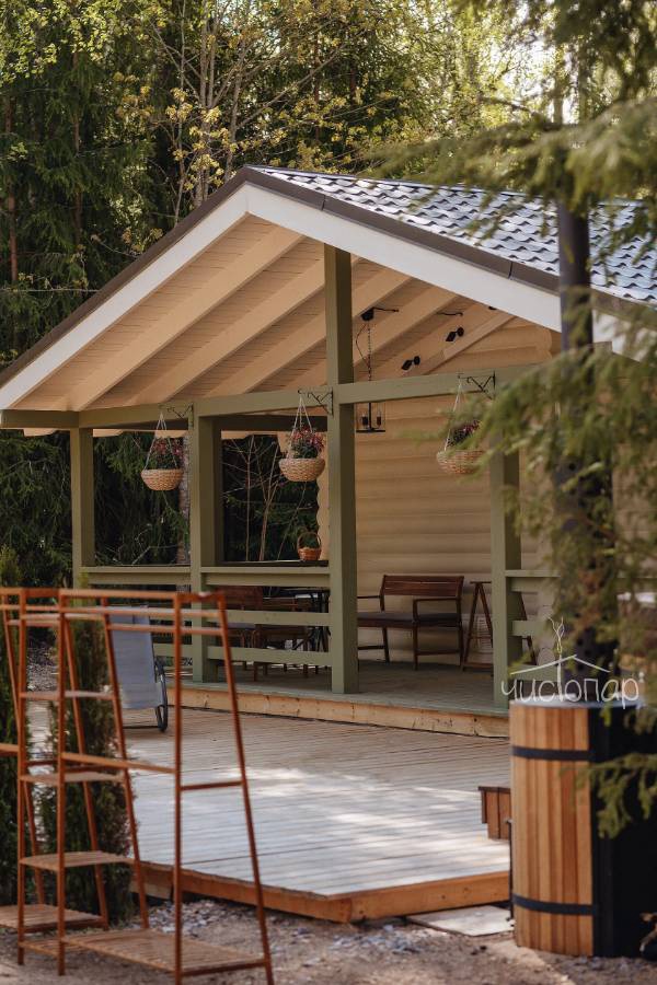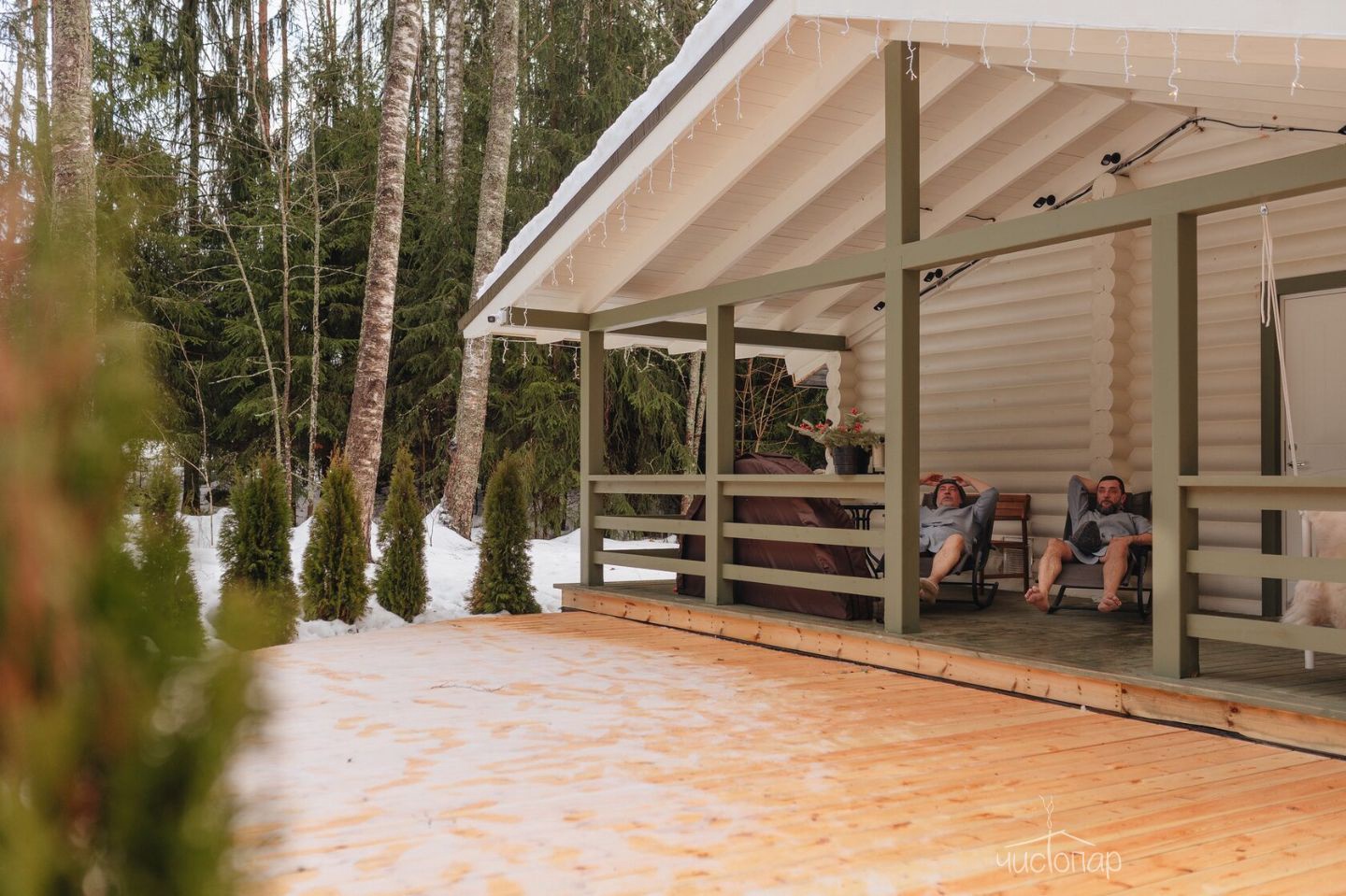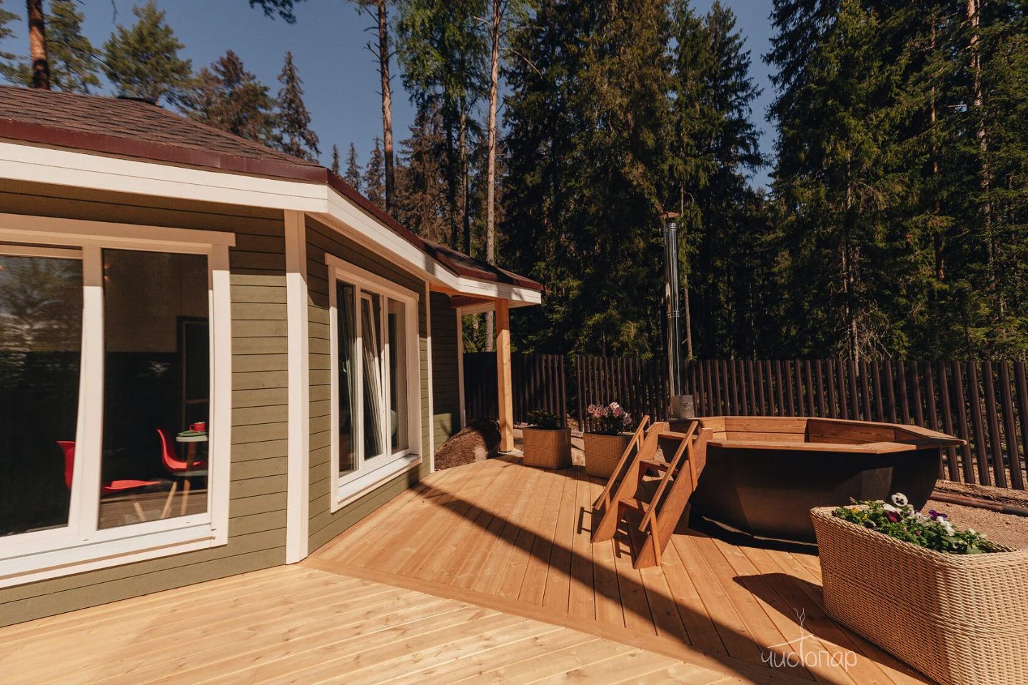 На территории комплекса бани с купелью Фурако и банным чаном. Уютные зоны отдыха.
