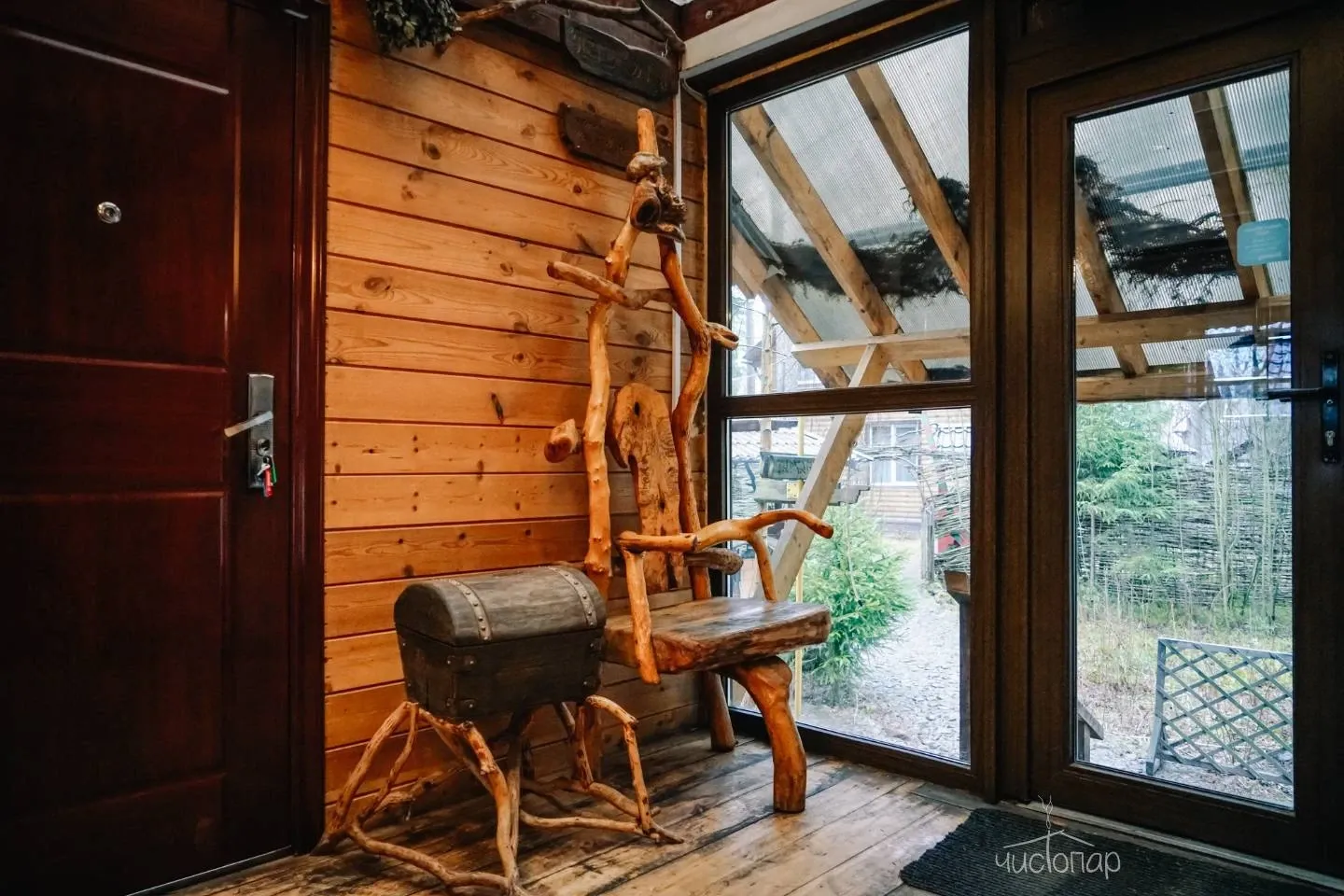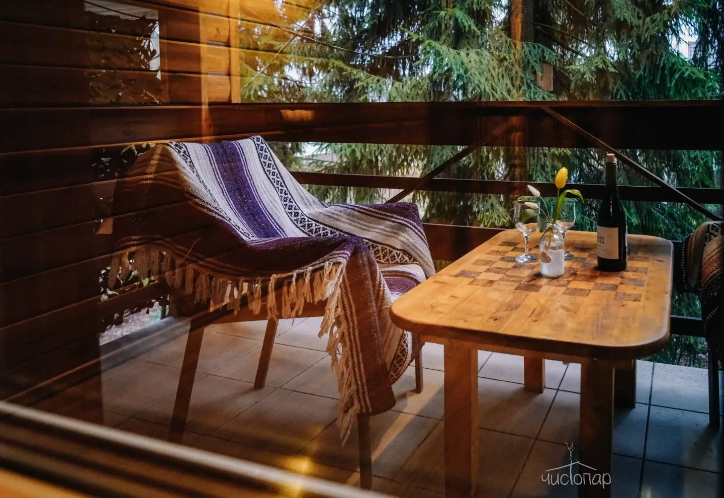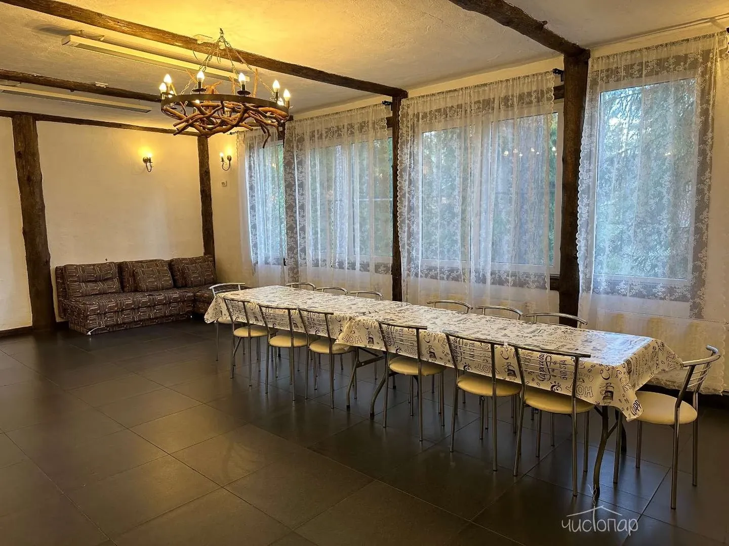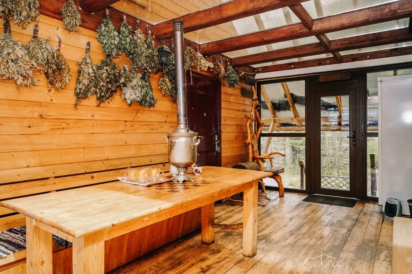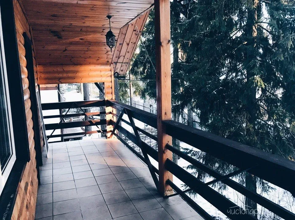 - хрустальная терраса с большим столом
