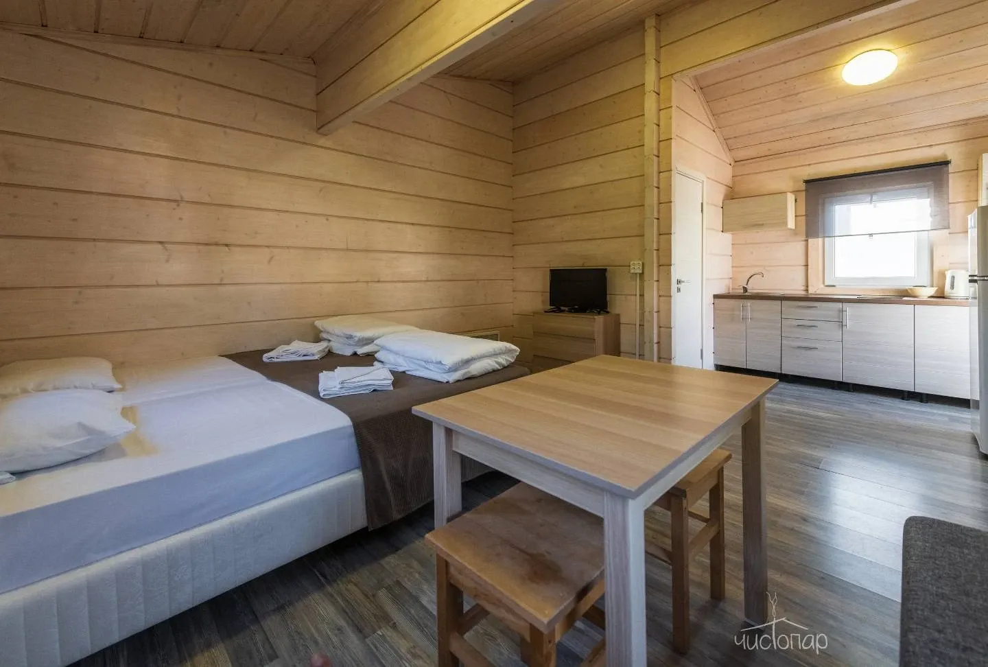 На территории основного круглогодичного комплекса Яркое расположены двухэтажные бревенчатые коттеджи на 6-8-10-12 мест, гостиница на 36 мест с номерами Стандарт и Люкс, ресторан, спортивные и развлекательные комплексы.