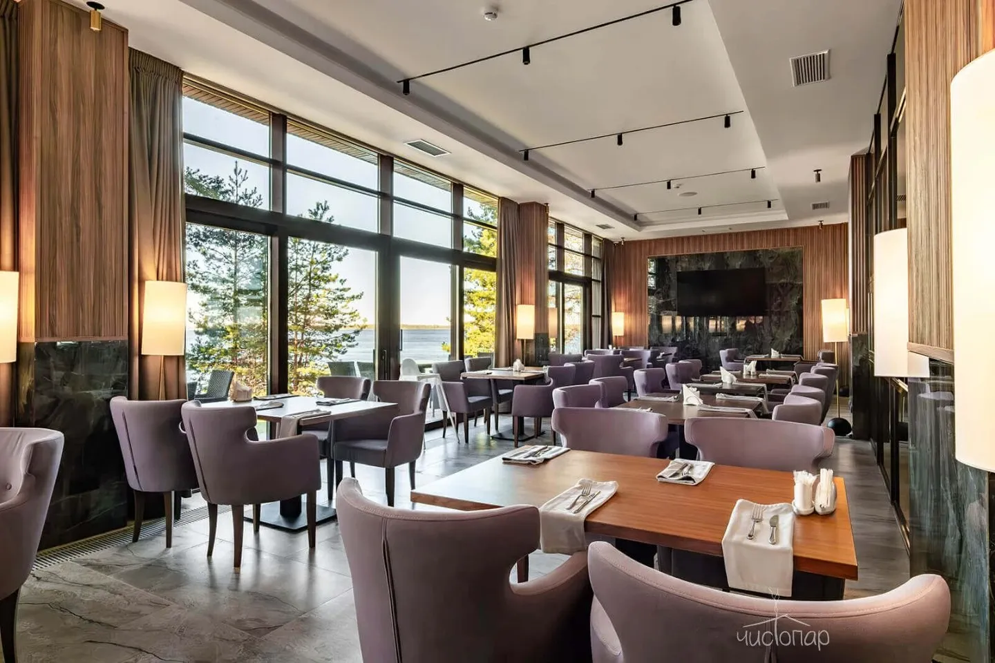 К банному столу шеф-повар парк-отеля подготовил специальное меню с закусками, полезными травяными чаями и напитками.
