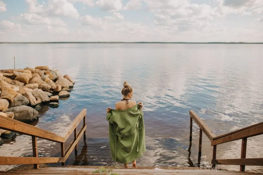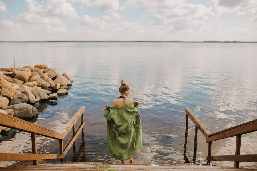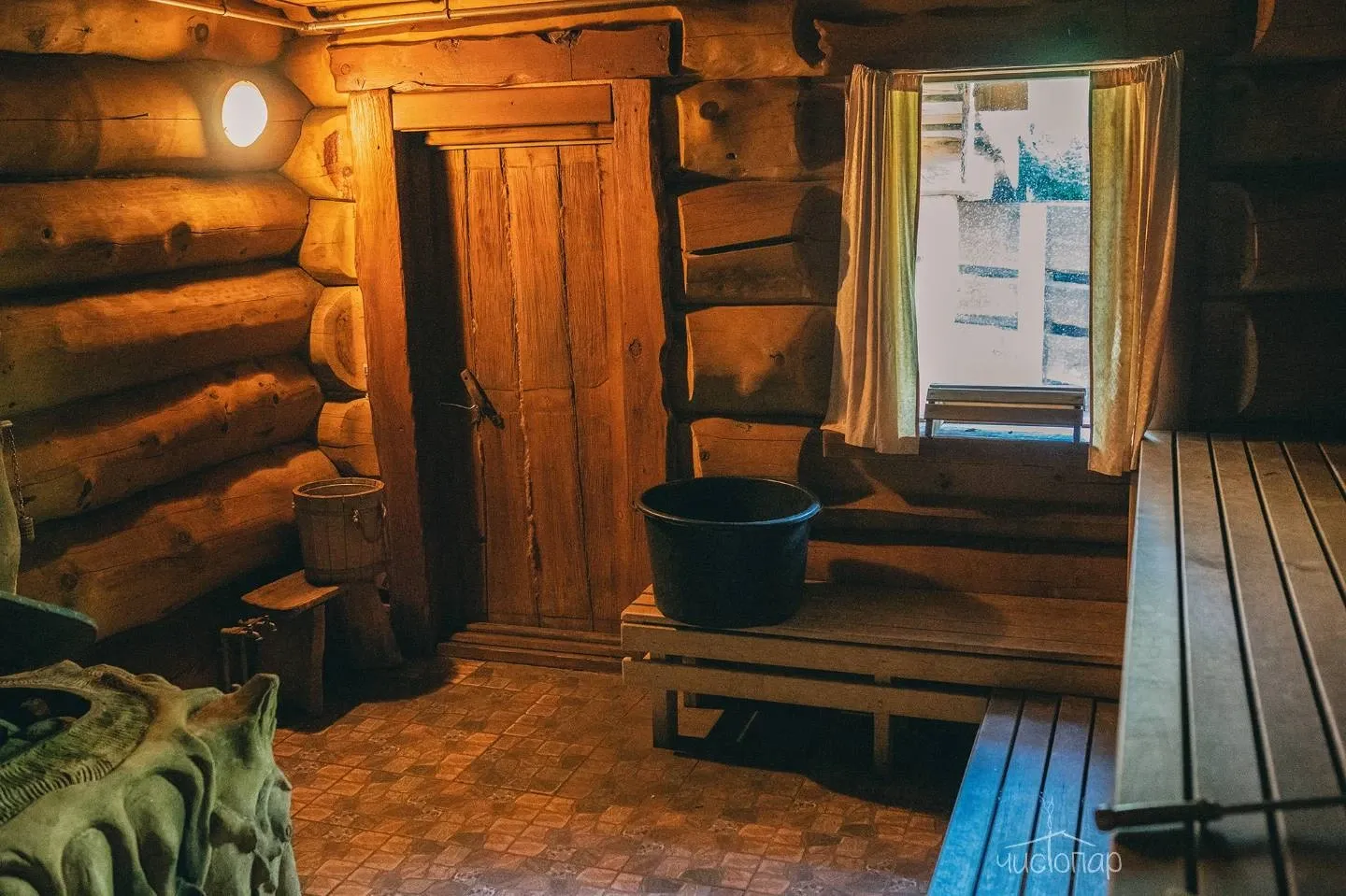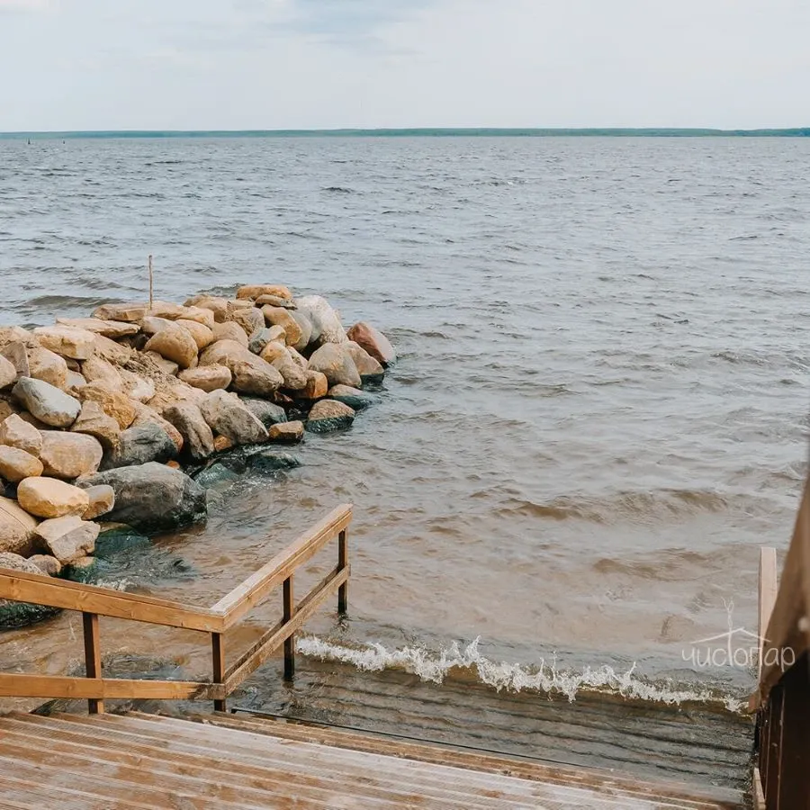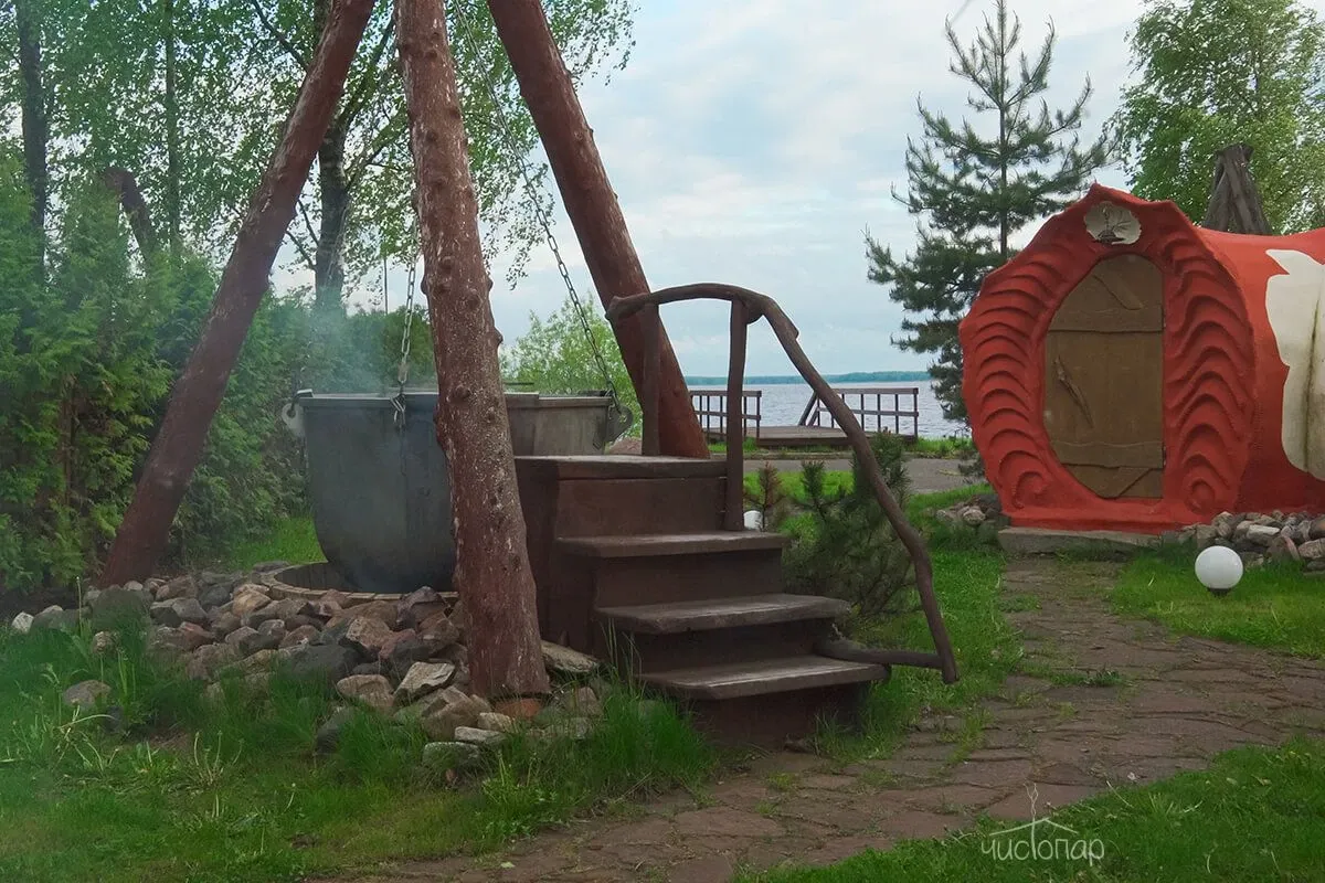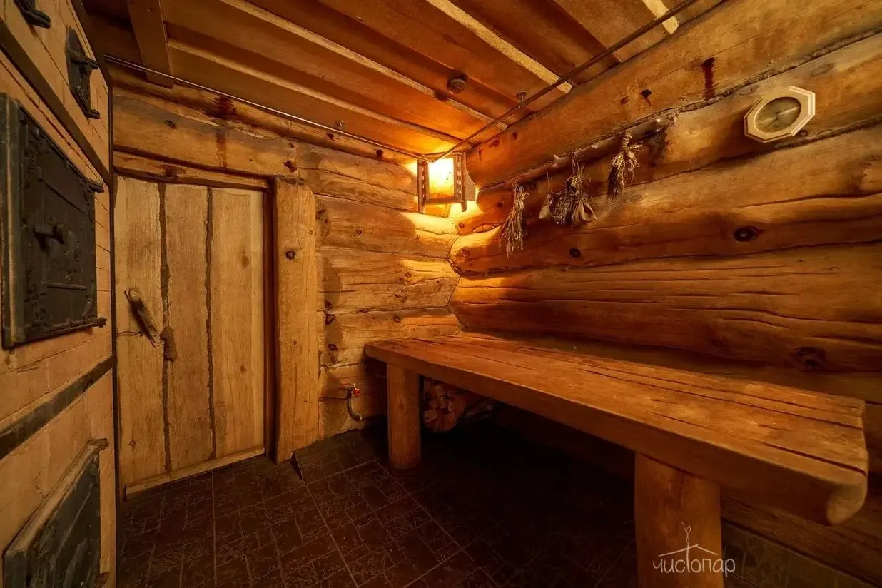Дровяная печь впечатляющих размеров обеспечит идеальное прогревание, а сруб из сибирского кедра наполнит воздух неповторимым ароматом и полезными для здоровья эфирными маслами. А после парной можно освежиться в ледяной купели на улице или прямо в Волге благодаря оборудованному спуску.