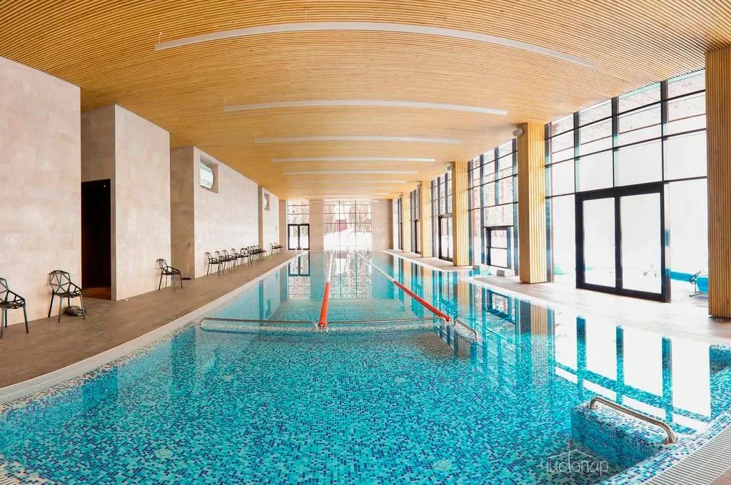 Посещение фитнес-зала, бассейна, 2 бань, продолжительность посещения 1,5 часа исходя из установленных сеансов, по предварительной записи, двое взрослых, трое детей до 13 лет включительно