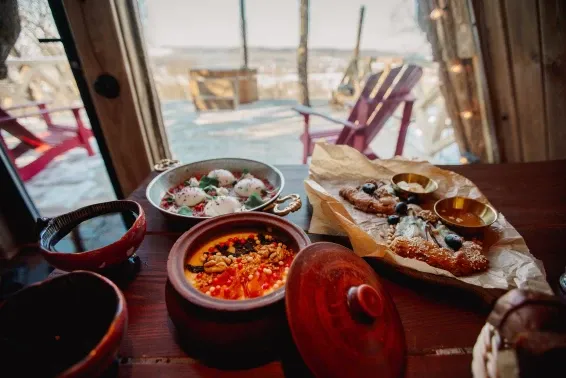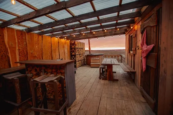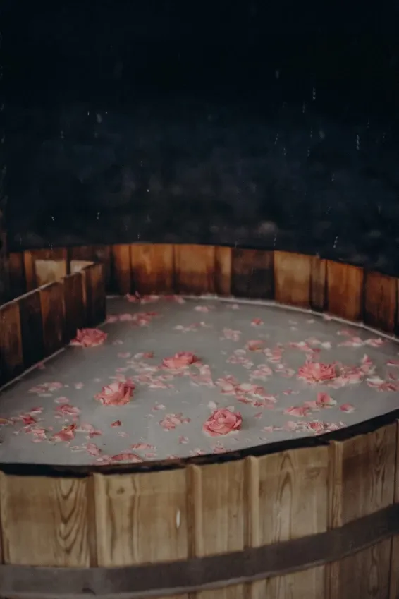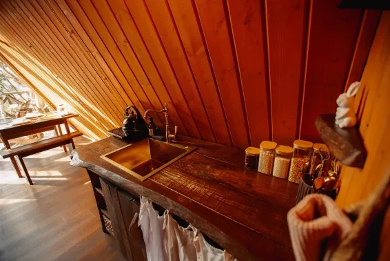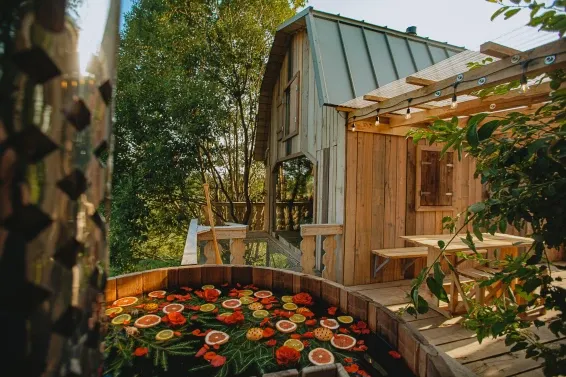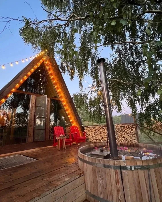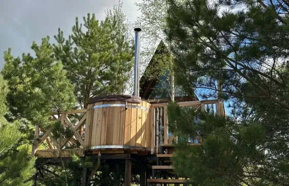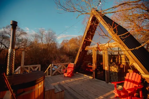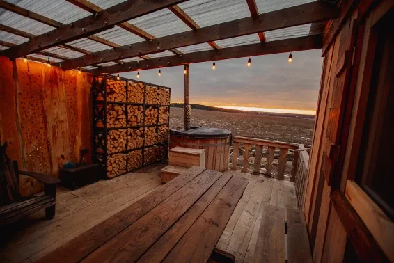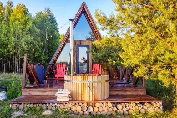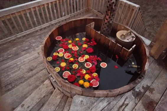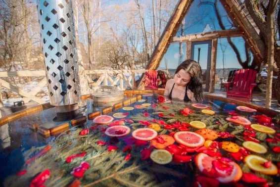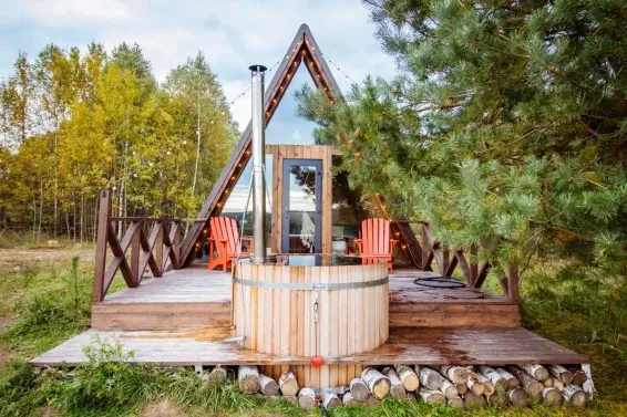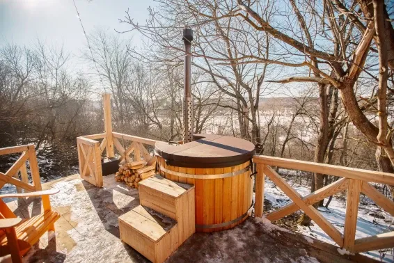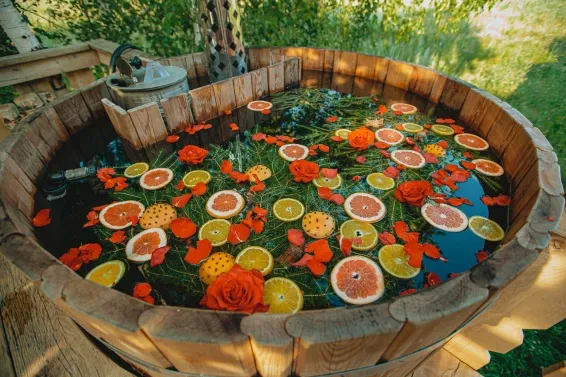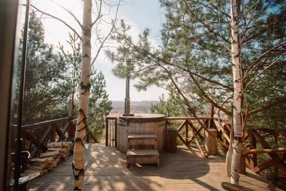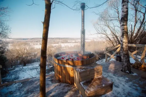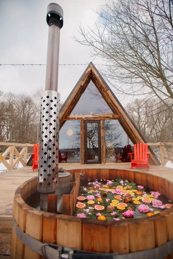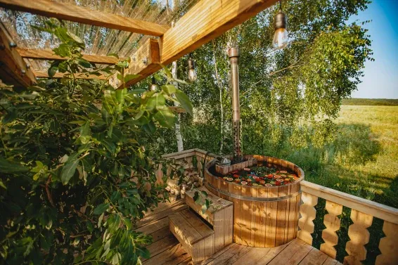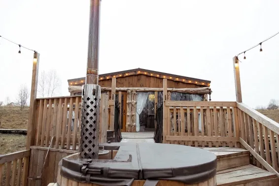 Одной из главных особенностей глэмпинга являются видовые горячие купели «Фурако» из лиственницы, установленные на террасе каждого шале. Купель будет готова к приезду гостей, и можно будет наслаждаться купанием в любое время, так как гостям предоставляют дополнительные дрова.