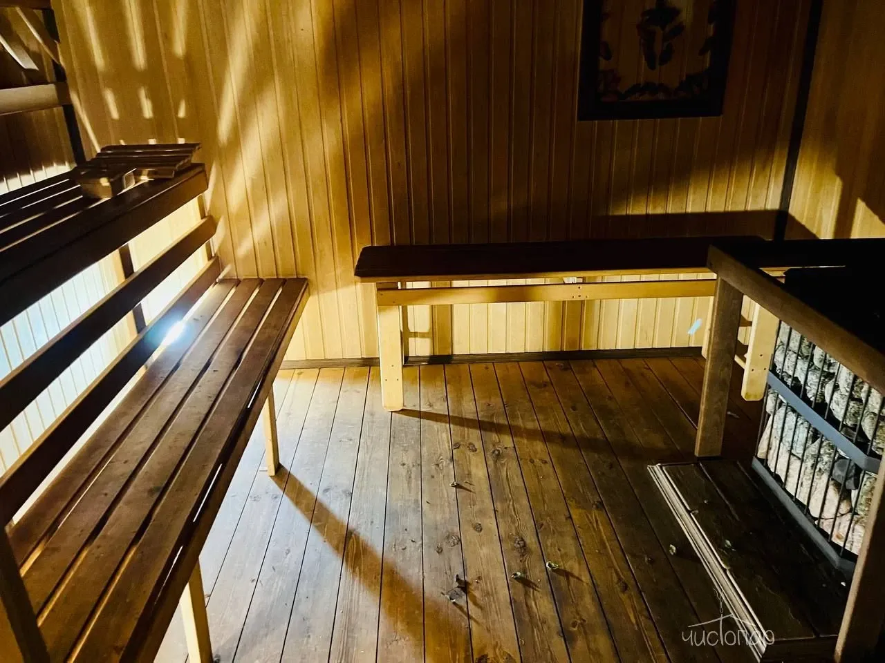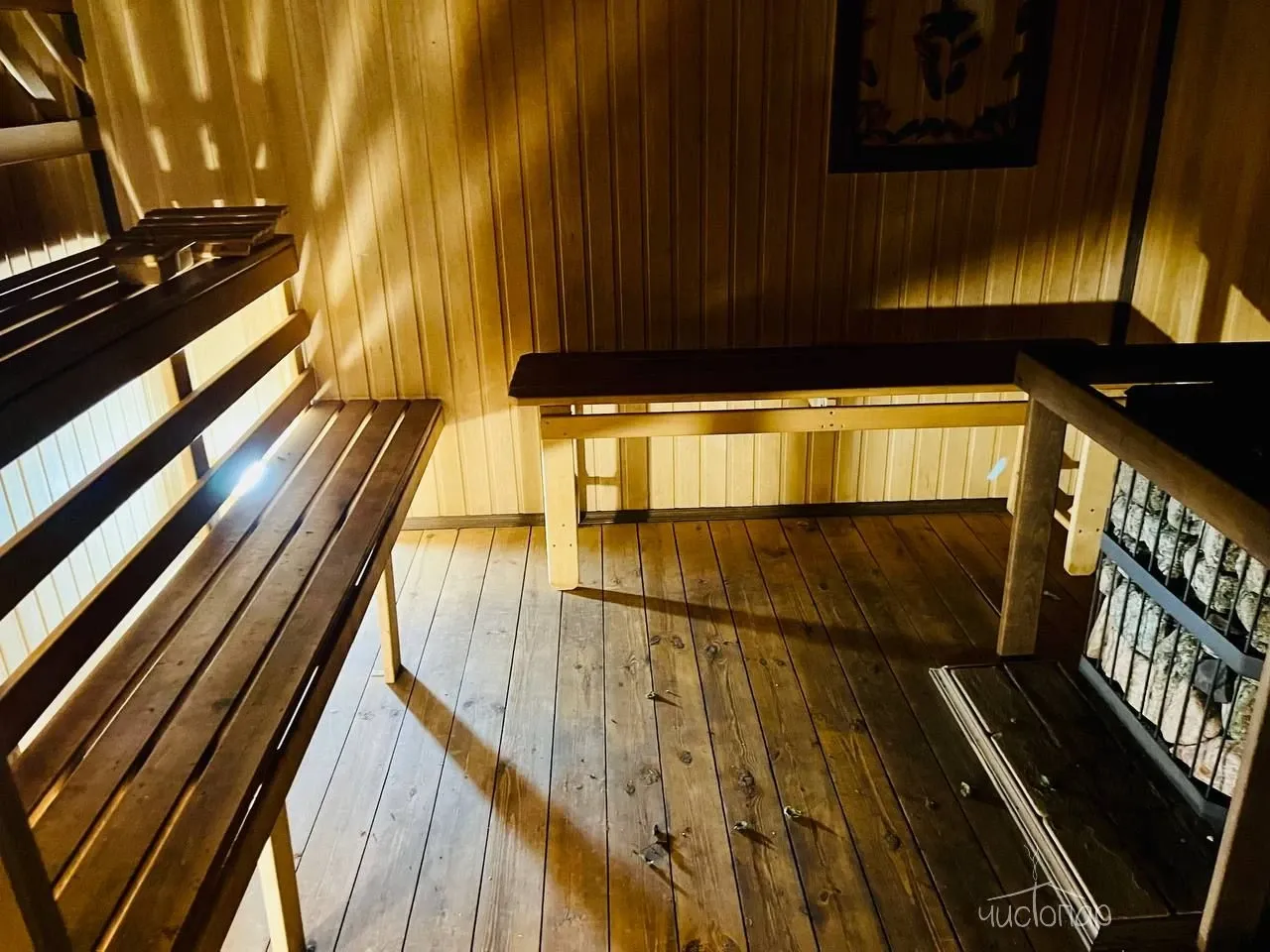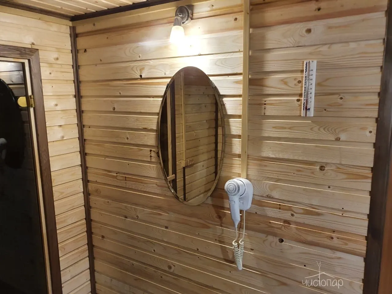 Есть сауна, гостиная, 2 спальни, душ, санузел и телевизор.