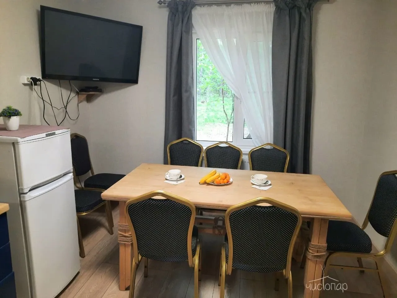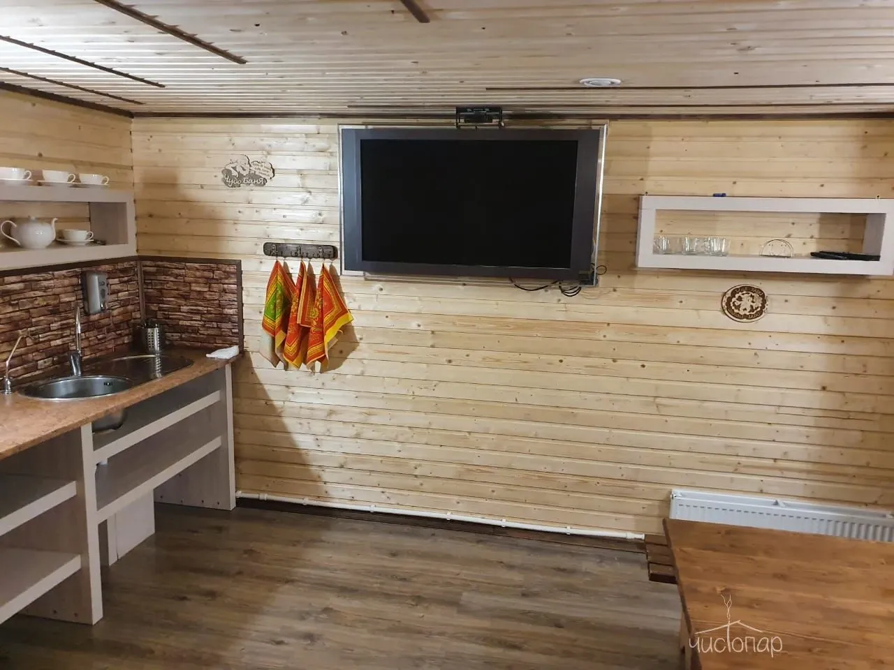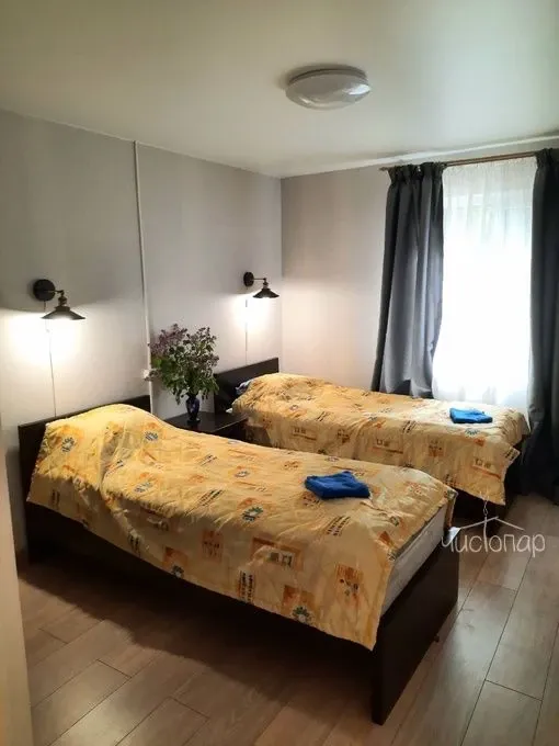 Есть сауна, гостиная, 2 спальни, душ, санузел и телевизор.