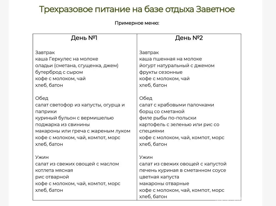 База отдыха предлагает услуги по размещению, питанию и организации досуга: