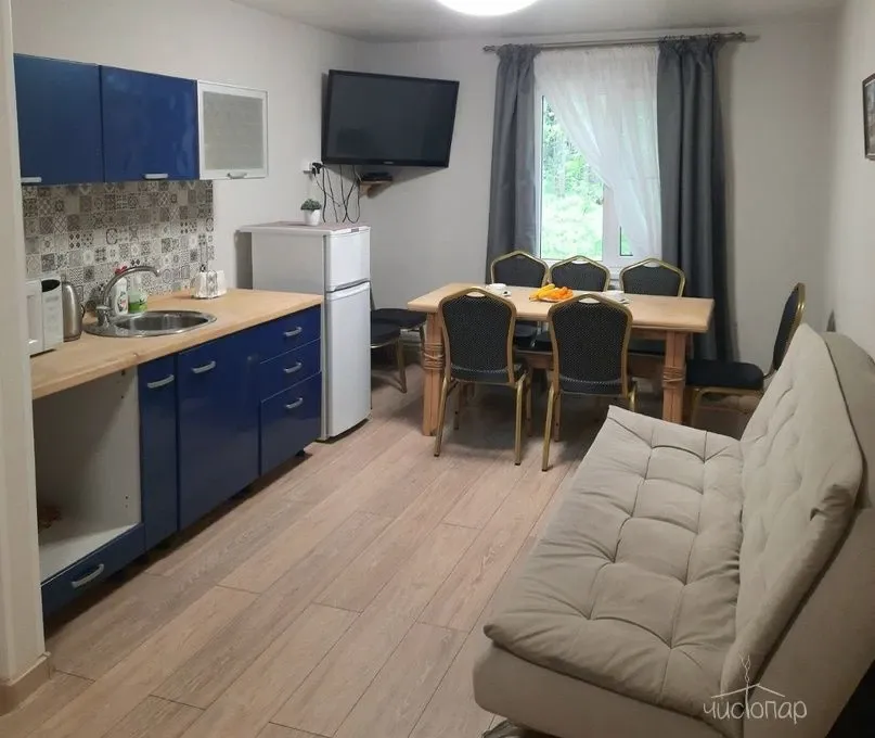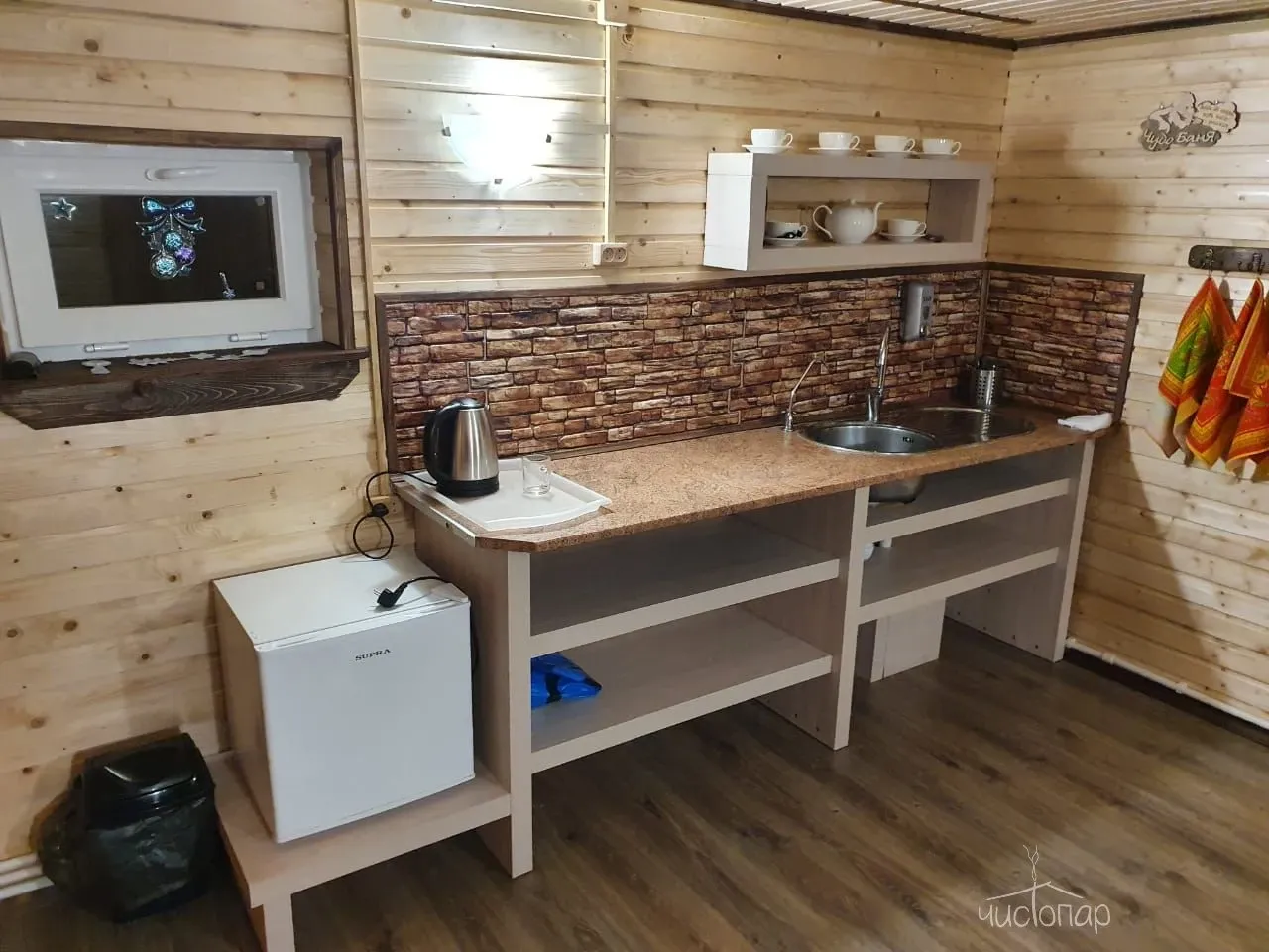 Мини - кухня (без плиты), холодильник с микроволновкой.Читать далее