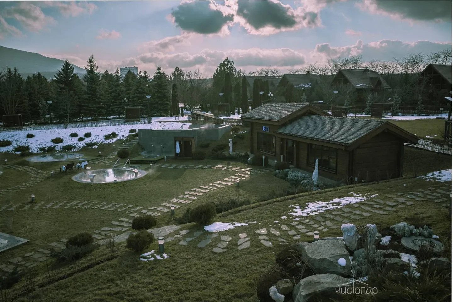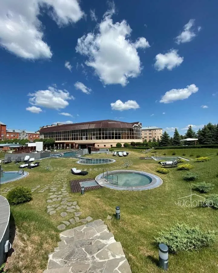 Это отдых для эстетов и ценителей европейского комфорта в лучших традициях мировых термальных курортов. На 2.5 га в долине Пятигорья расположились открытые и закрытые бассейны с водой 100% и 50% минерализации, бани и сауны, зоны релакса и спа