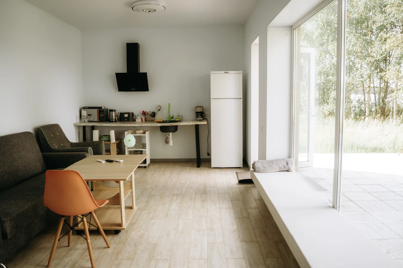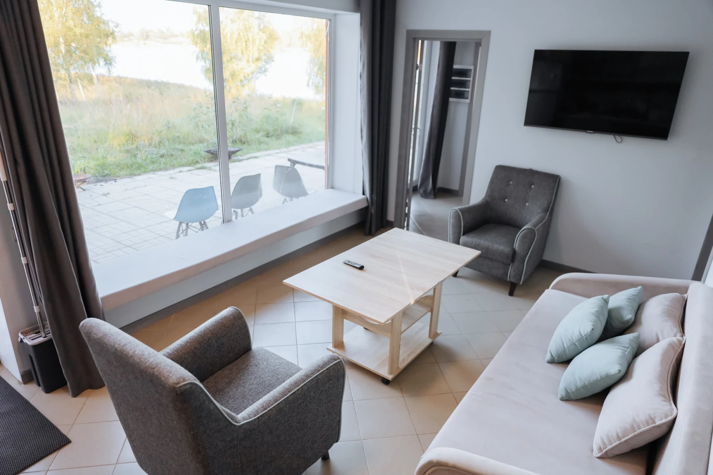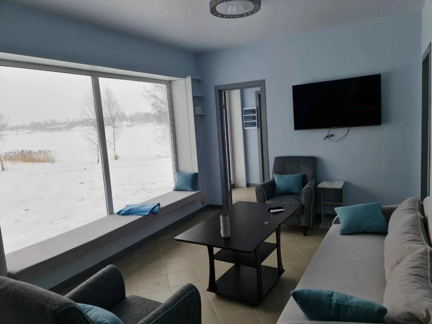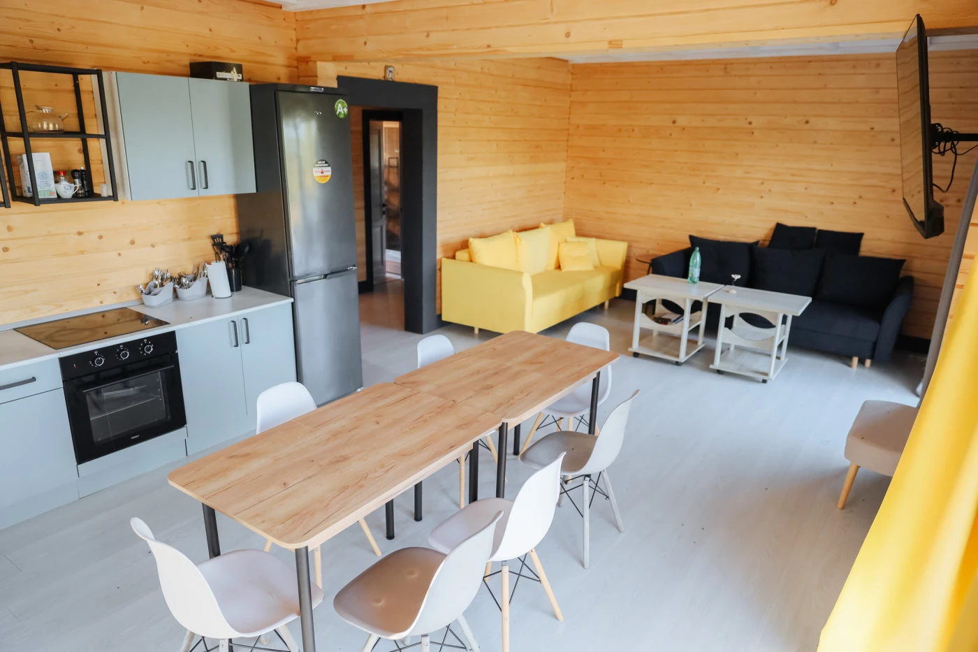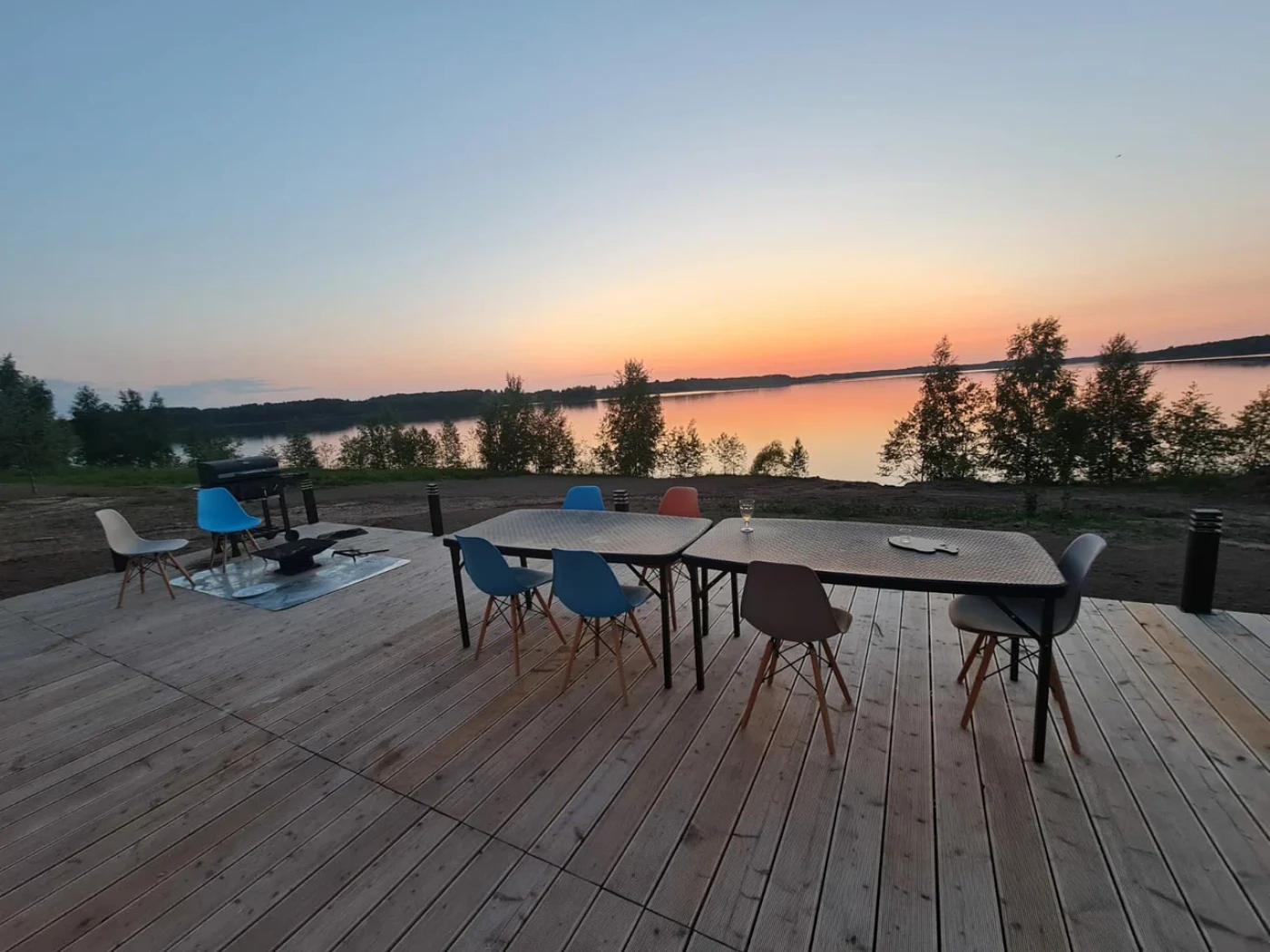 Кафе на территории отеля нет. Дома оснащены всесезонной площадкой для барбекю. Вы получите все необходимое для пикника: мангал, необходимые аксессуары и 2,5 кг угля.
