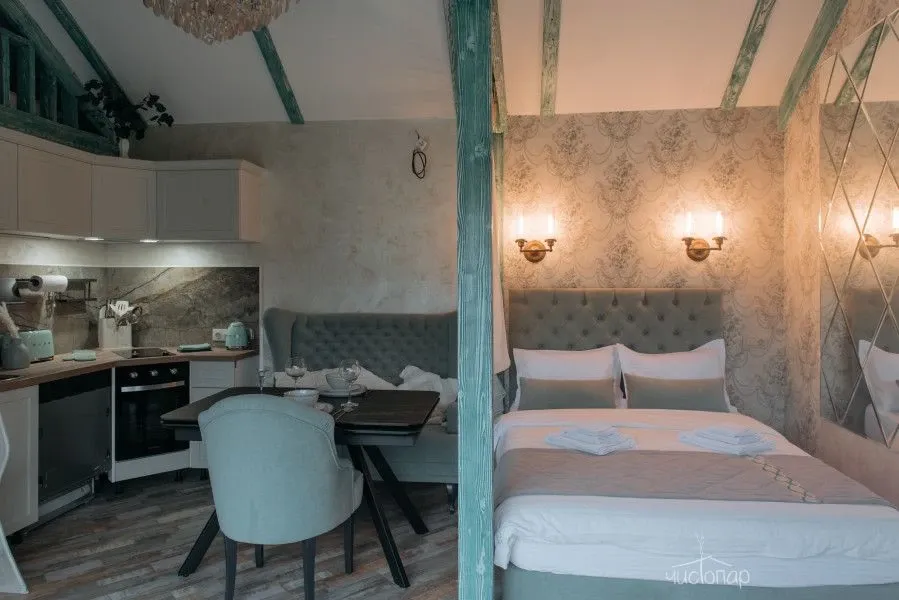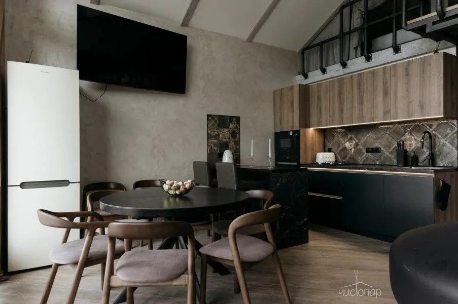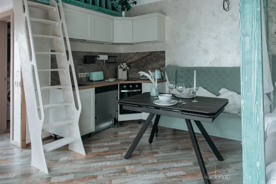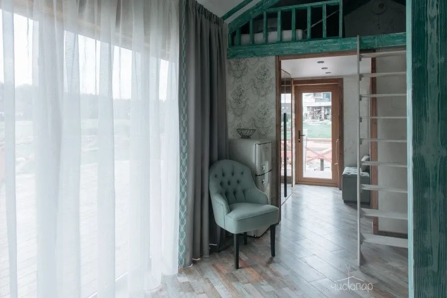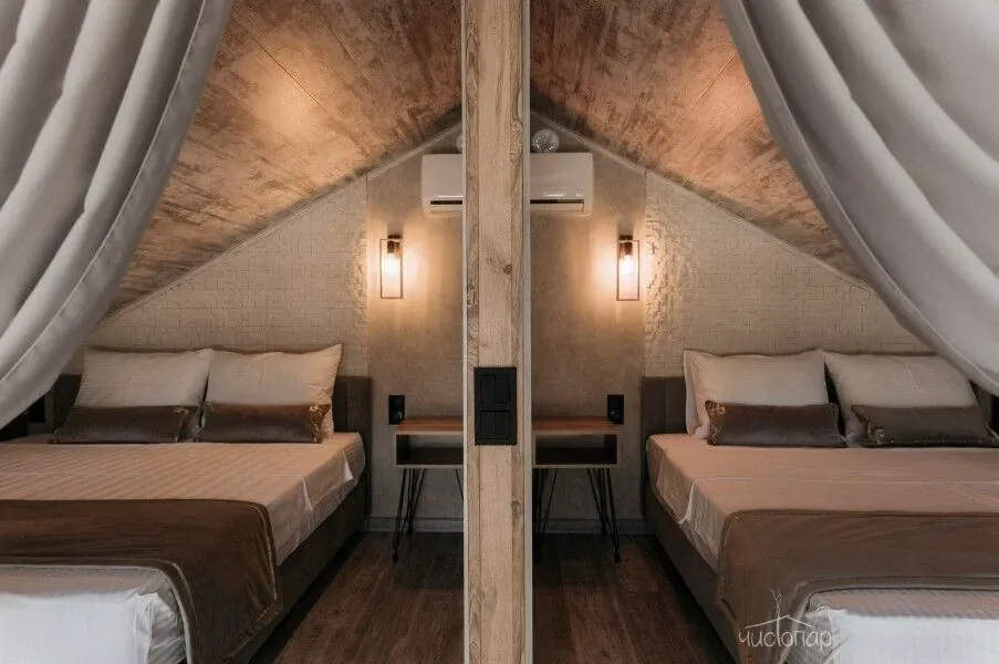 В доме 3 спальни с двуспальными кроватями с белоснежным бельем: 2 спальни в уютном лофте и одна спальня за подвижной ширмой, также можно разложить диван в общей гостиной для еще 2ух гостей.