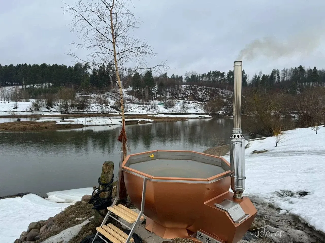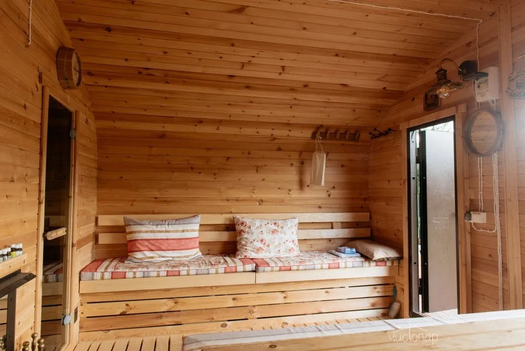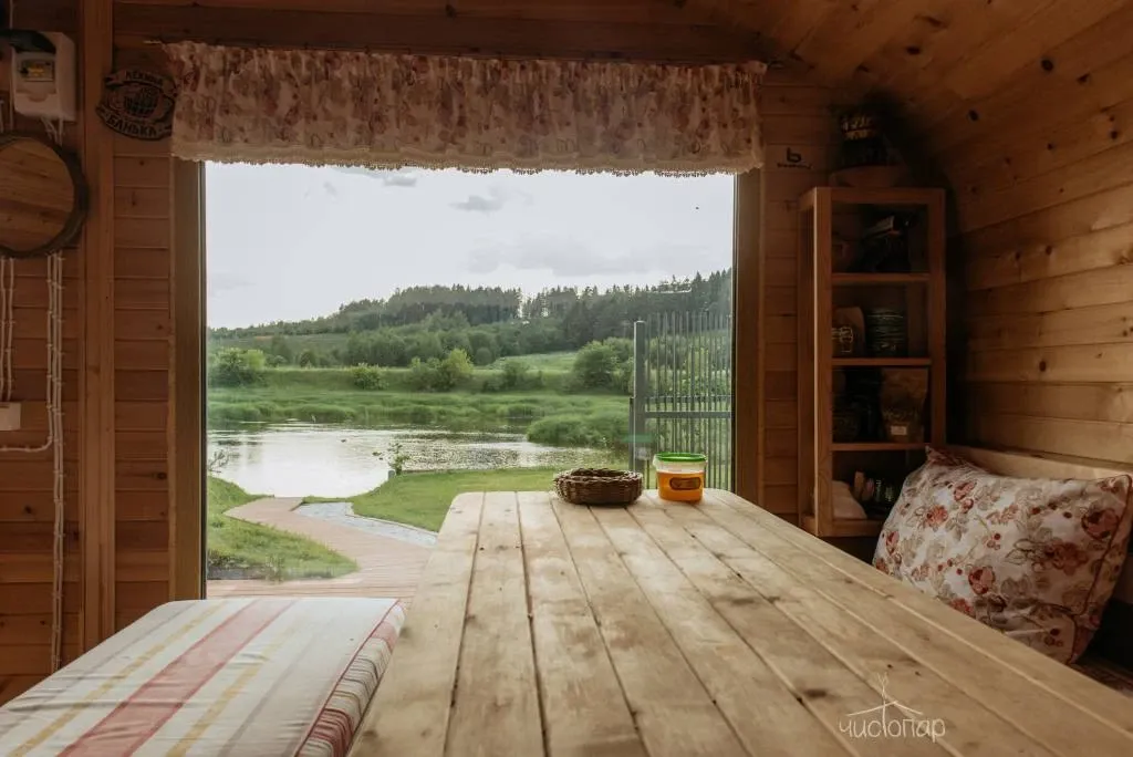 Гостям предлагают уютные дома с баней на берегу и банным чаном.