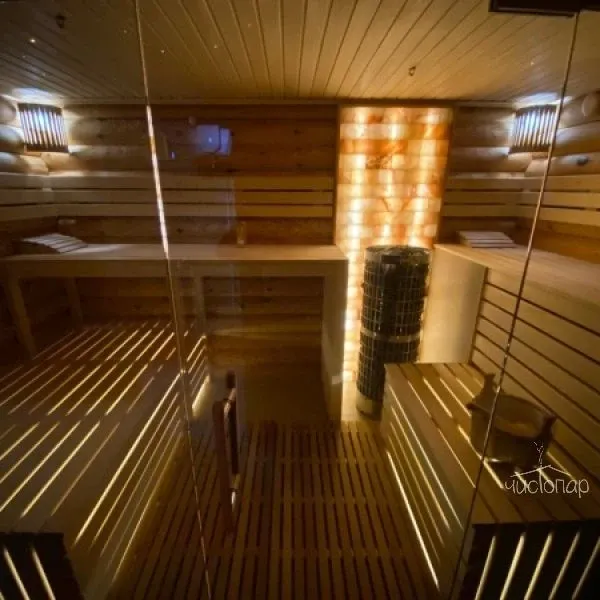 СаунаНовая комфортабельная сауна вместимостью до 6 человек. Просторная парилка. Душ, ведро для обливания холодной водой, телевизор, чайник, туалет. Комната отдыха.