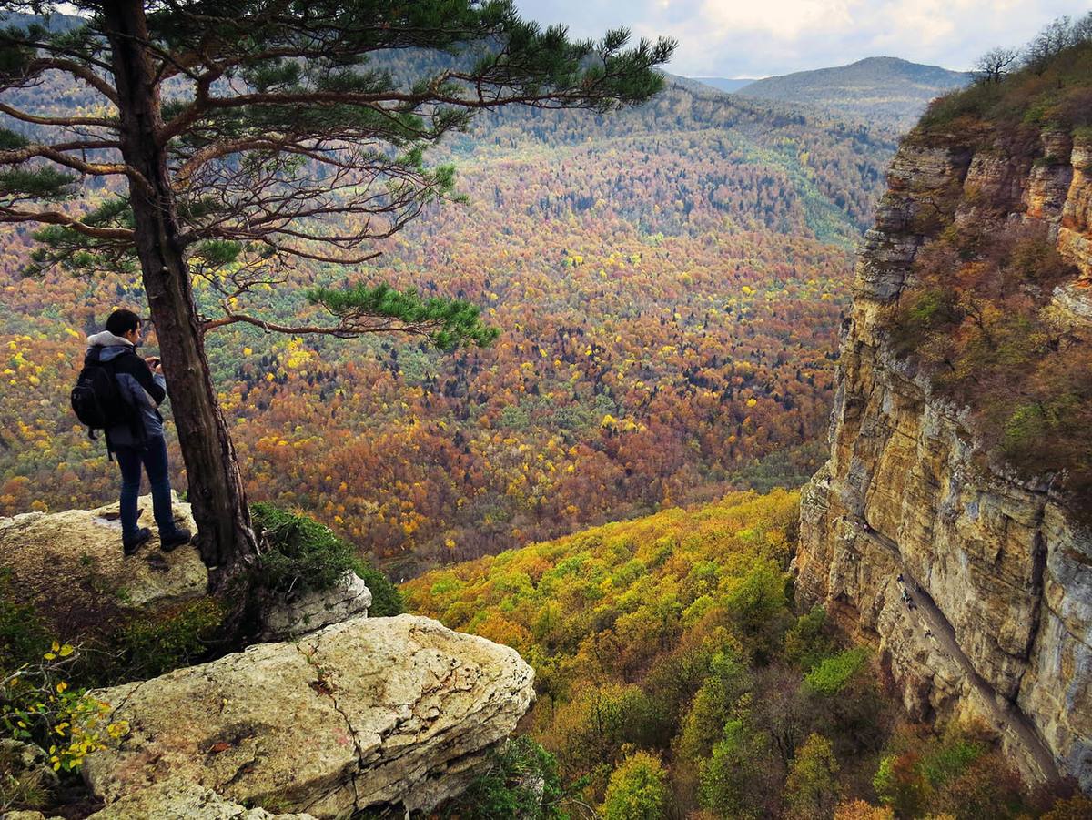 Чуть выше, буквально над Орлиной полкой, на высоте 1200 метров над уровнем моря, возвышаетсяСкала «Пирамида». Ее вершина – идеальная обзорная площадка, с которой, если повезет, можно наблюдать завораживающее зрелище – парящих в небе сипов.