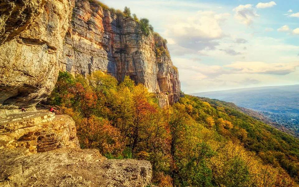 Для любителей головокружительных видов и адреналина Мезмай приготовил настоящие сокровища. Одно из них –Орлиная полка, скальный уступ на горе Ленина, возвышающийся на 300 метров над землей. Нависающая сверху скала создает ощущение полета, а высота уступа до 3 метров и ширина около 5 метров позволяют почувствовать себя покорителем вершин.
