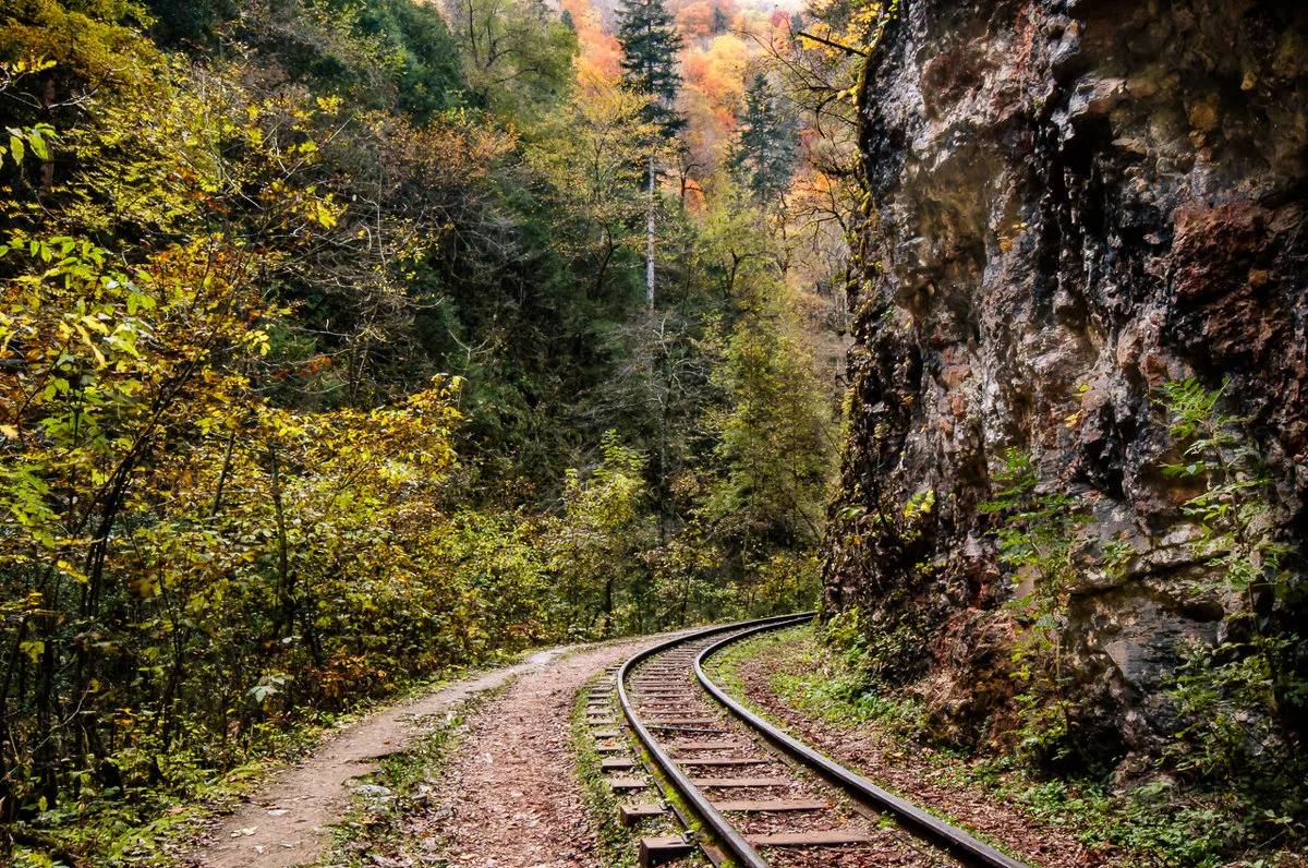 Неотъемлемой частью путешествия по этим местам являетсяУзкоколейная железная дорога, проложенная в Гуамском ущелье. Здесь вас ждет настоящее приключение – поездка на туристическом паровозе (а на самом деле, тепловозе ТУ8), который курсирует над обрывом, вдоль отвесных скал, предлагая незабываемые виды и ощущение полного погружения в дикую природу.