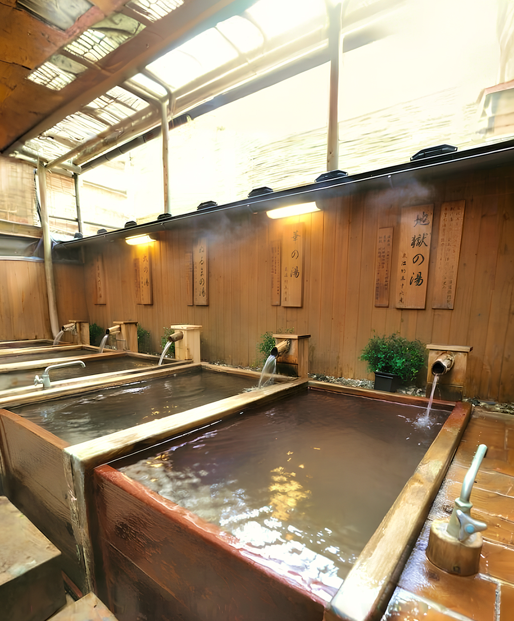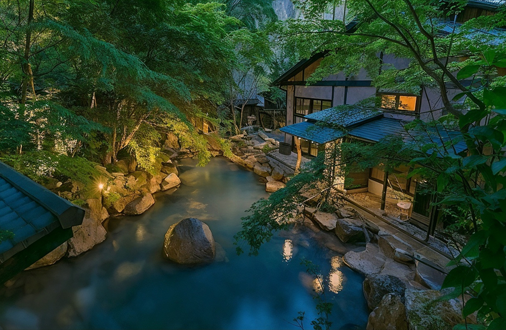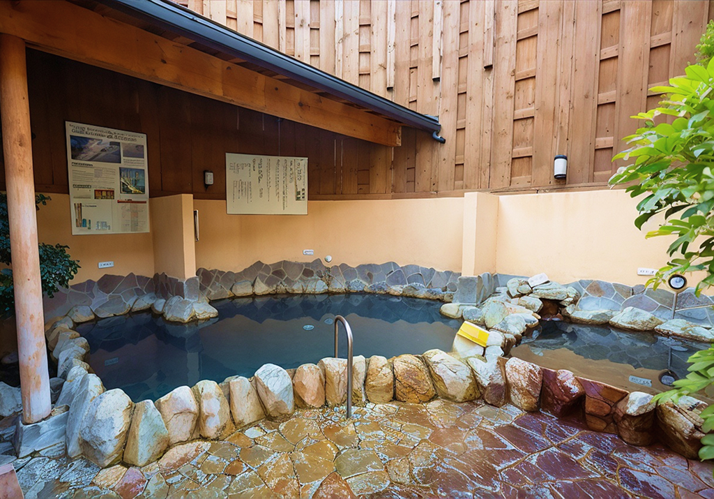 Во внутреннем дворике, под крышей, расположенаротенбуро— ванна на открытом воздухе. Температура воды в ней составляет 42°C. Вокруг раскинулся небольшой садик с традиционным каменным светильником. Оснащение бань включает низкотемпературные, массажные и совершенно холодные ванны. Все ванны наполняются водой из природных горячих источников, которая поступает непосредственно из-под земли.