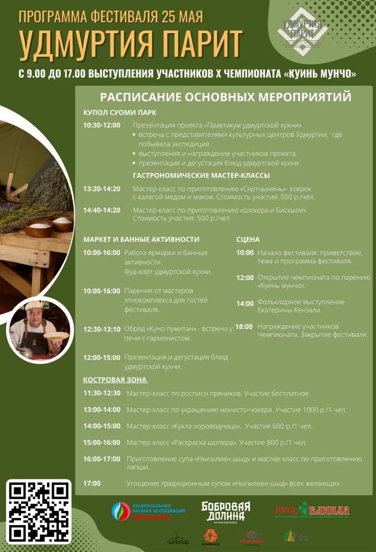 В этом годуФестиваль «Удмуртия ПАРит»посвящен презентации удмуртской кухни, ставшей результатом экспедиционного проекта Этнокомплекса «Практикум Удмуртской кухни», который проходил по территории Удмуртии, а также исконными удмуртскими традициями и ремеслами.