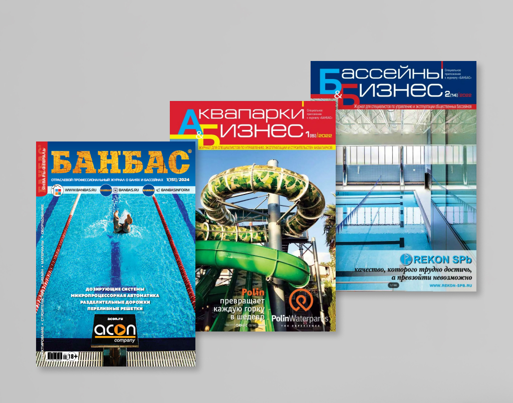 Основным нашим изданием является журнал «БАНБАС», который выходит уже 26 лет. Помимо него, мы выпускаем два приложения, выходящие три раза в год: «Бассейны и Бизнес» и «Аквапарк и Бизнес». Эти специализированные издания мы выделили отдельно, поскольку они ориентированы на определенную корпоративную аудиторию и рекламодателей. В них глубже освещаются вопросы управления бизнесом, сервиса, эксплуатации и нормативной базы.
